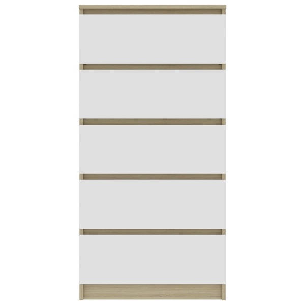 Drawer Sideboard White and Sonoma Oak 60x35x121 cm Chipboard