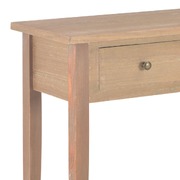 Our wooden console table, featuring a simple yet timeless design, will surely make a great addition to your living room, dining room, hallway, and more. The table features excellent workmanship combined with great functionality. Thanks to its compact design, our console table occupies very little space and fits into smaller areas. Two smooth-rolling drawers offer you additional space for your ornaments, cosmetics and other private belongings. This dressing table is constructed from high-quality MDF and pinewood with brown painted finish for durability, which gives you years of service.