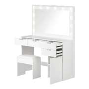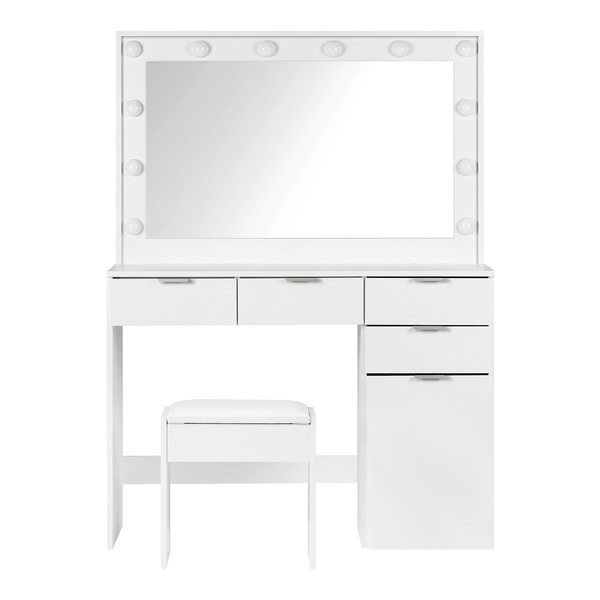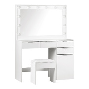 Dressing Table Stool Set Makeup Large Mirror Dresser 12 LED Bulbs White