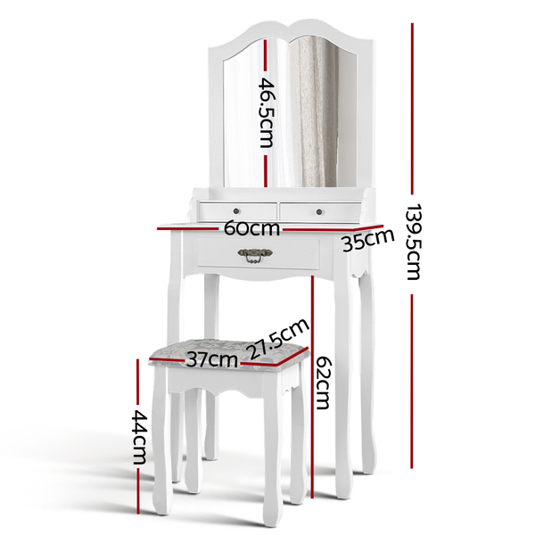 Dressing table overall dimensions: 60cm x 35cm x 139.5cm