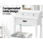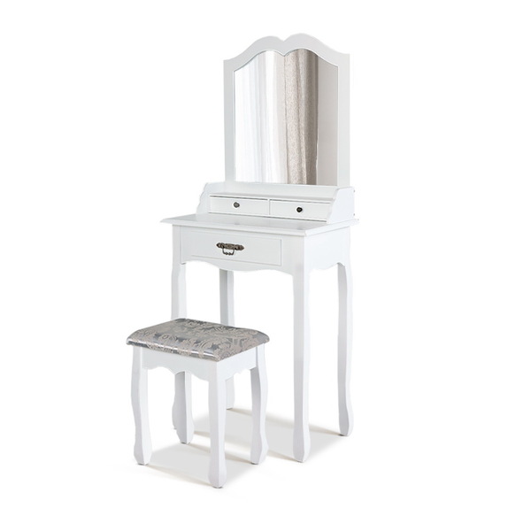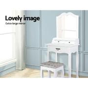 Add a touch of Provincial charm to your bedroom with our luxurious period-style Artiss Dressing Table Set. Graceful and elegant, the set exudes finesse in every corner and aspect. Much like yourself as you prepare for the day in alluring beauty. Made with meticulous craftsmanship, the dressing table features lovely cabriole legs, a large mirror and three drawers (two small and one large) with antique-style metal handles that provide ample storage space for your jewellery pieces and make-up essentials. And the piece de resistance must be the beautifully embroidered padded stool that is no less a work of passionate furniture making. Together, the ensemble is immediately captivating to the senses.