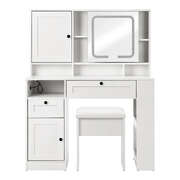 Dressing Table Stool Set LED Mirror Makeup Desk Charging