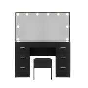 Elevate your beauty routine with the LED Vanity Desk. Featuring a Hollywood-style makeup mirror with 10 LED bulbs, this vanity offers adjustable 3 colour light modes and 10 brightness levels for precise application. The spacious tabletop accommodates all your essentials, while 7 smooth-runner drawers provide organised storage. Paired with a comfortable foam-padded stool, this durable and easy-to-maintain vanity is the perfect addition to your bedroom or dressing room. Stylish, functional, and thoughtfully designed, it's ideal for beauty enthusiasts seeking luxury and convenience.