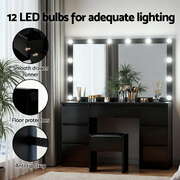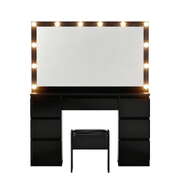 Dressing Table Vanity Desk Set with Stool 12 LED Bulbs Black Makeup Table