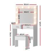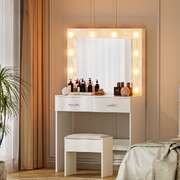 Dressing Table Vanity Desk With Stool 10 LED Bulbs White Finish