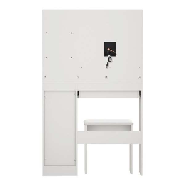 Dressing Table Stool Set Makeup Mirror LED Light Large Cabinet White