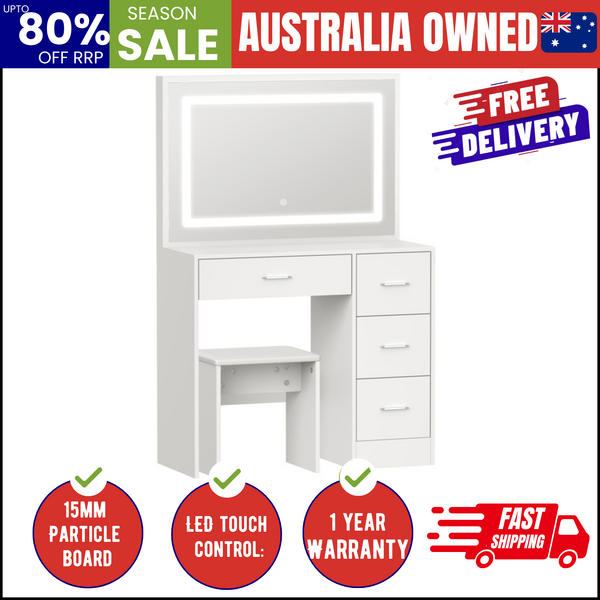 Dressing Table Stool Set Large Makeup Mirror LED Light Vanity White