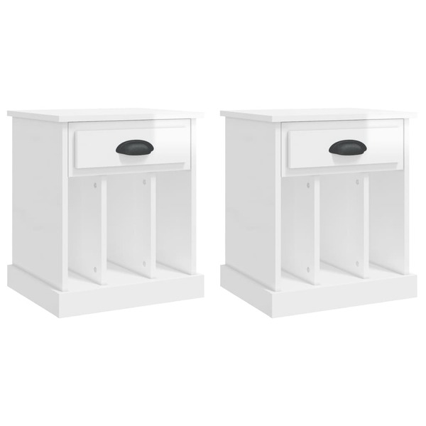 Dual Luminous Dreams: Set of 2 High Gloss White Bedside Cabinets