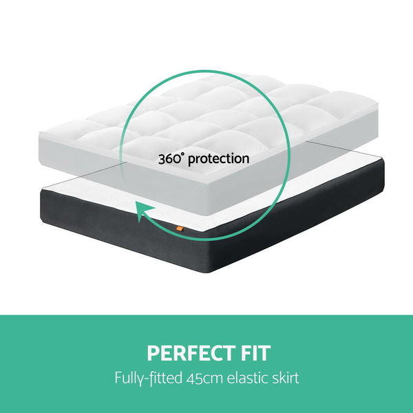 Turn your old mattress into a luxurious pillowtop mattress with the comfort of a 5 star hotel. With generous Duck Feather & Down filling, it provides a lofty cushion of softness supporting your every move. Anti-bacterial, dust mite resistant and anti-allergy, this mattress topper is absolutely worth 5 stars. Designed for mattresses of up to 45cm thick, the fully-fitted elastic skirt provides a secure grip ensuring the topper will stay in place.
