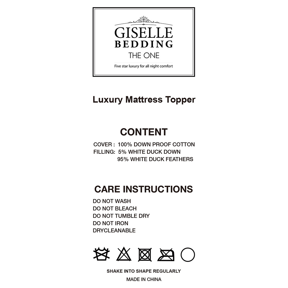 Giselle Bedding Single Size Duck Feather & Down Mattress Topper