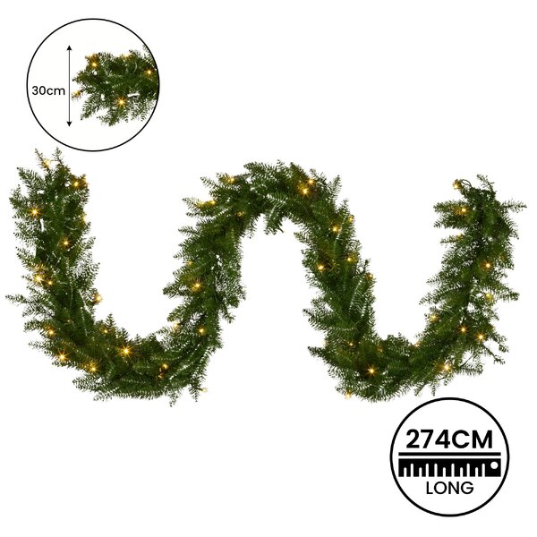 274cm Pre-lit Christmas Garland - Dunhill Shimmer Fir