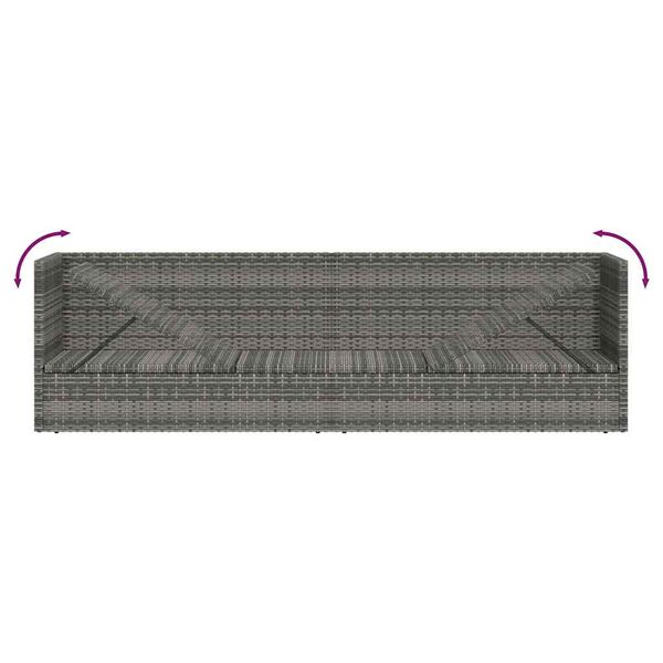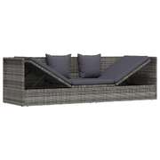 Our poly rattan garden bed combines style and functionality, and will become the focal point of your garden or patio! Thanks to the water-resistant PE rattan, the sunlounger is easy to clean, hardwearing and suitable for daily outdoor use. The lounge bed features a sturdy powder-coated steel frame, making it very stable and durable. This sunbed can be adjusted on both sides to create optimal seating or a comfortable position to relax. The thickly-padded, removable cushions and back pillows will provide the ultimate comfort. The low-maintenance polyester cushion covers can be easily removed and washed. This lounge bed is easy to assemble. Delivery includes 1 bed, 1 large seat cushion and 4 back pillows. Note: We recommend covering this piece of furniture in the rain, snow or frost.