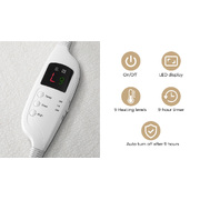 Every winter, beating the cold is a constant ritual. Besides heating the room and space, you can also enjoy your sleep with a nice warm bed that awaits you at bedtime. With the Bedding Polyester Electric Blanket, you can definitely look forward to forty winks with cosy warmth and without the costly power bills or dry air ambience of a constantly heated bedroom. The lusciousfleece and polyester combo electric blanket fits snuggly on top of your mattress with its fully fitted design so that it always remains in place. To warm up the bed, just use the controller to set the desired temperature with a selection of nine heating levels, conveniently indicated on the LED display, to suit your preference. The heat distribution is spread evenly throughout the blanket so that you need not worry about any cold fronts from head to toe. You can rest assured too that all is safe and good as the electric blanket is built to certifiable standards with many safety (such as overheating and automatic shut-down) and hygiene (dust mite and bacteria prevention) protection features built-in. Time for a clean? Just detach the controller and pop the blanket into the washing machine in accordance with its washing instructions. Available in a variety of sizes from single to king with an Australian standard plug, the Bedding Polyester Electric Blanket is the perfect choice for warmer and comfortable sleep at all times.
