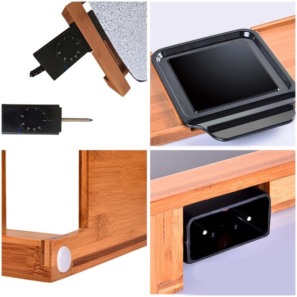 - Bring on the heat - but don't burn your meat! The tray is equipped with an adjustable thermostat for safe controlled cooking