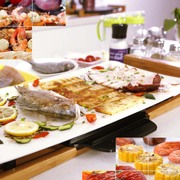 - Bring on the heat - but don't burn your meat! The tray is equipped with an adjustable thermostat for safe controlled cooking