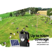 Ever worried about livestock and animals escaping your property? This 10km Solar Electric Fence Energiser is the ideal product for you. Whether for the farm or just around your suburban home, the solar fence energiser can perform effectively in either environment. The unit charges using solar power, but in case of poor weather a fully charged battery lasts for up to 28-29 sunless days. No need to worry about the rain; the energiser is also waterproof. If the fence is activated by an animal, the unit will generate a brief pulse as the voltage will drop from 8KV to 1.5KV to prevent harmful electric shocks. Featuring a simple installation design, you can have it up in a matter of minutes. Compact, lightweight and versatile, the soar fence energiser is an effective low maintenance solution to protect your property and livestock.