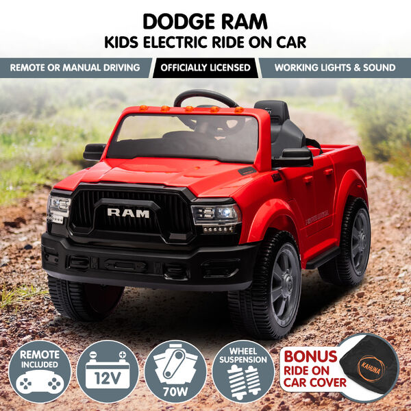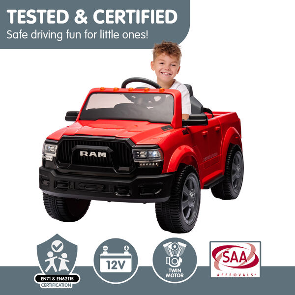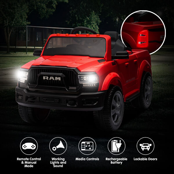 RAM Electric Ride On Car in Red with Realistic Features for Kids