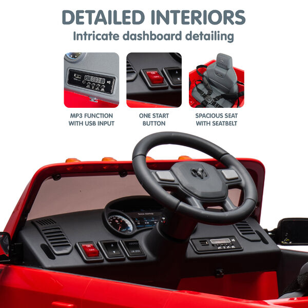 With cool details like an MP3 player, USB port, steering wheel sounds, working lights and even a cup holder and storage shelf, this ride on car has it all. The one-start button and front lights make it feel super realistic, and the five-point seatbelt keeps them secure. Its the perfect kids car with style, safety, and functionality rolled into one ride for young racers ready to hit the road!