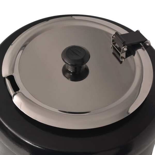 This high-quality electric soup kettle is an ideal device for restaurants, catering services, or buffets as it will keep soup, sauces, curries, or stews ready to serve at a food-safe temperature. The soup warmer has a solid construction. The kettle's body is made of black powder-coated cast iron, which is scratch-proof and durable. The stainless steel soup container is removable for easy cleaning. The hinged lid has a notch to accommodate a ladle. The heating temperature is adjustable from 35 to 80 °C with the temperature controller.