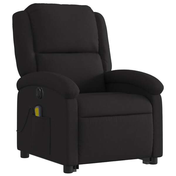 Sit back and drift away in this highly comfortable electric stand up massage recliner chair! Power lift function: This recliner chair for the elderly is equipped with an electric motor for the lifting-up function. Thanks to the function that pushes the entire chair up, you can easily stand without stressing your back and knees with a simple press of the button. Electric reclining function: This reclining chair is also equipped with an electric motor that helps automatically adjust the footrest and backrest to any position as per your comfort with a simple press of the button on the side of the chair. This feature allows for a maximum tilt of 135 degrees. Additionally, the backrest can go automatically back to the original place with an easy press of the button. Vibration function: The featured 6 massage points let you experience a better-targeted massage. Additionally, the included hand control allows you to pick different massage programs. The massage function is powered by the USB connector that requires a certified 5V USB power source (not included). Comfortable seat experience: The thickly padded seat, backrest, and wide armrests covered in fabric provide a cosy and warm sensation, making you feel embraced while seated. The fabric features a simple and clean look and is breathable and durable. Convenient side pocket: This armchair has a side pocket for your remote control or keeping your essential items within easy reach. Solid and stable frame: The frame made of wood and metal provides a strong structure and stability. This reclining armchair is comfortable and durable.