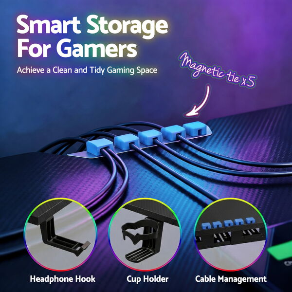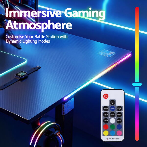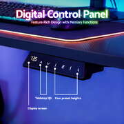 Designed for modern gamers, this gaming standing desk features electric height adjustment with memory control, RGB LED lighting, and a durable MDF desktop. Switch easily between sitting and standing while keeping cables organised for a clean gaming setup.