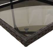 This garden dining set is a great choice for al fresco dining or just relaxing in the garden, backyard, or on the patio. Durable material: PE rattan, also known as poly rattan, is a strong, low-maintenance synthetic material that looks like natural rattan. It's lightweight, easy to clean, and commonly used for outdoor furniture due to its durability and weather-resistant properties.Compact storage: These chairs have a flap backrest that can be folded down, making it easy to store them under the table. When folded, they neatly fit under the table, forming a space-saving cube shape.Comfortable seat experience: This outdoor furniture, complete with thickly padded cushions, offers a comfortable seating experience.Removable and washable cover: These seat cushions feature removable covers for easy washing and maintenance. The cushion covers have a flap at the back for easy attachment to the backrests.Glass tabletop: The outdoor table's top is made from strong and durable tempered glass, making it easy to clean with a damp cloth and adding a touch of elegance to your outdoor space. Good to know:To make sure your outdoor furniture stays beautiful, we recommend protecting it with a waterproof cover.