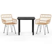 Create a compelling and cohesive aesthetic in your outdoor space with this garden dining set! Durable material: PE rattan, also known as poly rattan, is weather resistant and easy to clean. It remains beautiful on the outside for a long period of time. It offers great quality, convenience and an aesthetic look.Sturdy and stable frame: The steel frames make the patio set sturdy and stable for daily outdoor use.Practical tabletop: The smooth tabletop of the dining table is made of tempered glass which is easy to clean with a damp cloth. Additionally, the sturdy tabletop is perfect for placing meals, drinks, and other decorative items.Comfortable seating: The dining chair is designed with a backrest and armrest to offer you a comfortable seating experience.Practical footpads: The bistro set comes with footpads, which help it stand on the ground more firmly. Note:In order to extend the life of your outdoor furniture, we recommend you to protect it with a waterproof cover.Each product comes with an assembly manual in the box for easy assembly.
