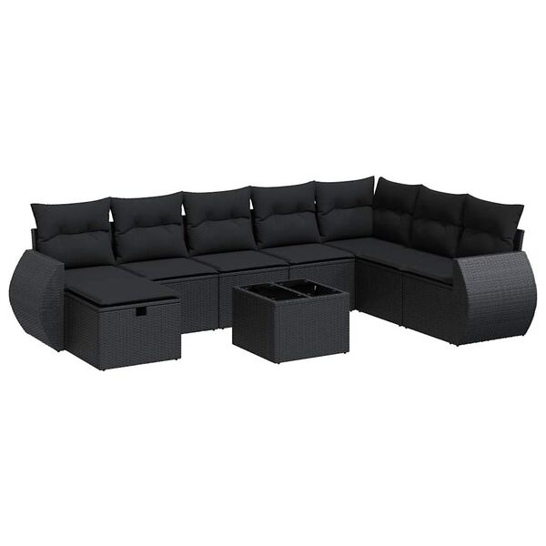 Elegant 9 Piece Garden Sofa Set with Cushions Black Poly Rattan