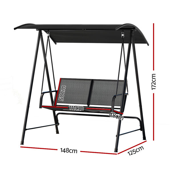 Outdoor Swing Chair Garden Bench Furniture Canopy 2 Seater Black