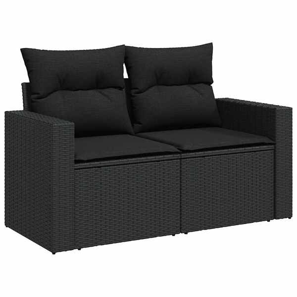 Elegant Garden Sofa Set with Cushions Modular Sofa 9 Piece Black Poly Rattan