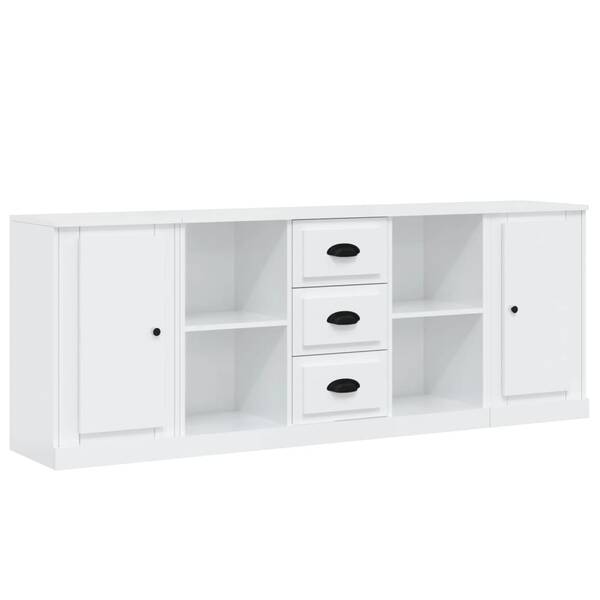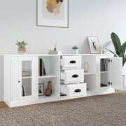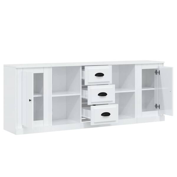 Elegant 3-Piece High Gloss White Engineered Wood Sideboard Set