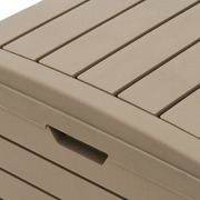 The outdoor garbage bin has a large capacity and double-lid enclosure, making it ideal for use in parks, gardens, and other public spaces. Durable material: Polypropylene (PP) is a popular plastic that is also one of the most used materials in outdoor furniture. It's lightweight, tough, and resistant to impact. Also, its resistance to UV rays and weathering makes it easy to clean and maintain.Imitation wood texture design: The trash can features an imitation wood texture design that adds a touch of natural charm to your outdoor living space.Double lid enclosure: The double-lid design hides the unsightly trash bag and keeps the unit securely shut even when overturned. Additionally, it helps to keep out pesky critters and prevents odours from escaping.Ample storage space: The trash bin has a large capacity of up to 118 L, so you can easily store all your outdoor waste.Removable fluid tray: The trash box features an easy-to-remove fluid tray that makes cleaning the unit as easy as pie.