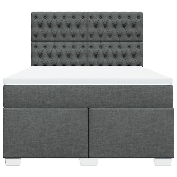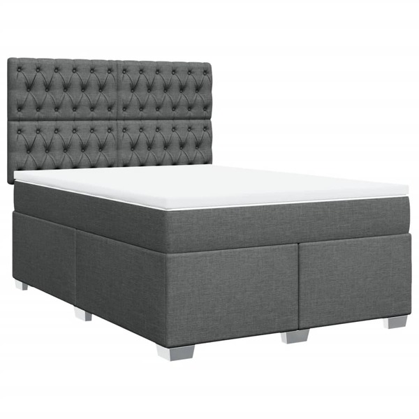 Elegant Queen Box Spring Bed with Dark Grey Fabric Mattress for Comfortable Sleep