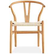 A classy dining chair enhances mealtime delight. Feel it by decorating your dining area with this attractive dining chair in natural colour, designed in the Scandinavian style. The iconic Hans Wegner Replica Wishbone chairs, featuring timeless curved back and armrest, with a hand-woven paper twine seat in natural colour, ensures lasting comfort. Because of a wooden construct, and strong legs, it is a beautiful addition to your dining space. It looks stunning in almost any decor settings, thanks to its homely design and sleek style. The beautiful chair is made of high-quality Beech wood and Recycled Paper Twine, obtained in a sustainable manner. A one-year warranty is included with the fully assembled dining chair.
