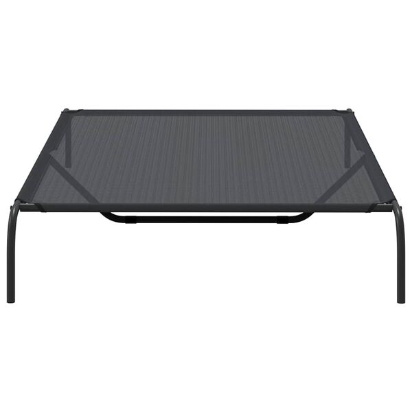Elevated dog bed with breathable black Textilene fabric and sturdy steel frame