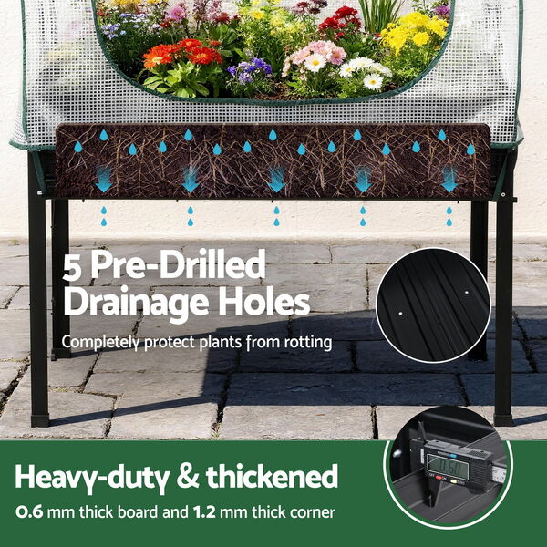 2-in-1 Design: Raised Garden Bed with Detachable Mini Greenhouse PE Cover.