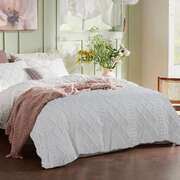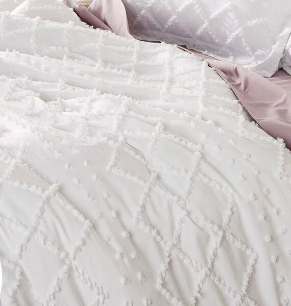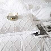 Tufted Boho Embroidery Quilt/Doona/Duvet Cover Set - White - Super King Size