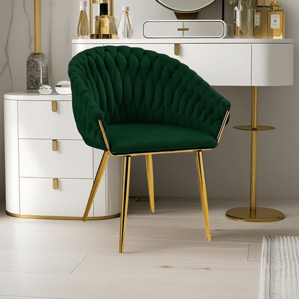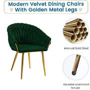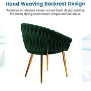 Emerald Green Modern Velvet Dining Chairs Upholstered Living Room Chair with Woven Back