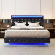 Ergonomic Floating Bed Frame Double with Headboard LED Lights