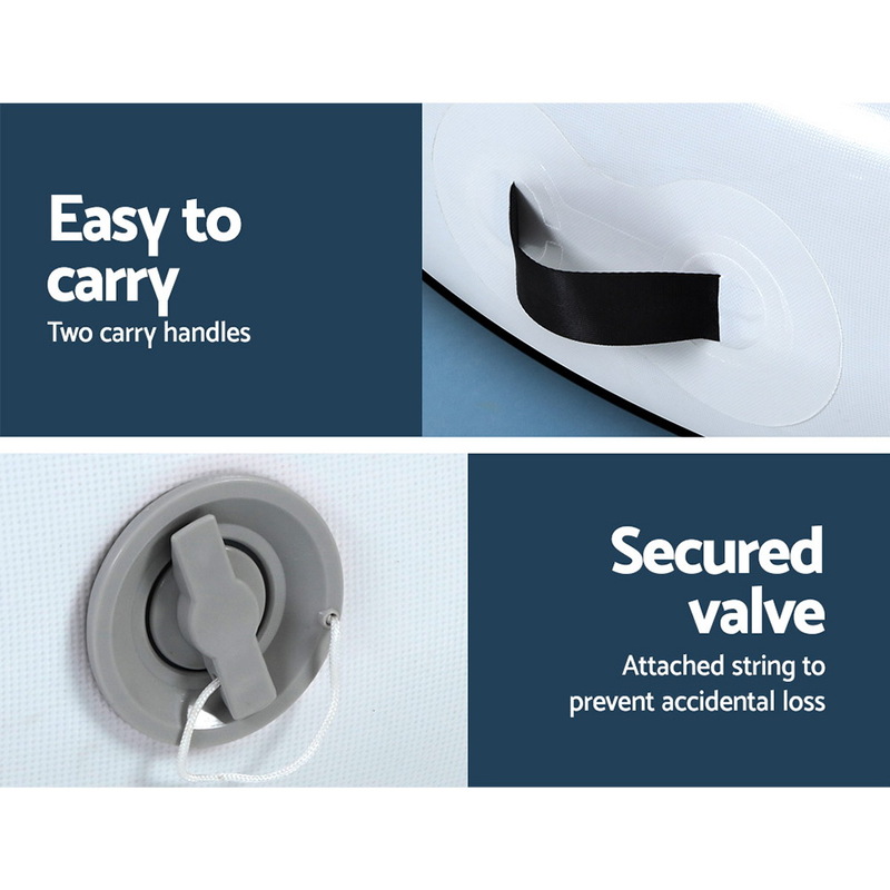 Our Everfit Inflatable Air Spot is a great training and landing platform that ensures safe and durable use. It can be used as a springboard on its own or to create various training set-ups with several air spots combined. Softer on the body than foam, the thick air spot is also bouncier than a spring floor and highly versatile. It features a 1000-denier double-wall fabric construction with an anti-slip and wear-resistant surface. Designed for robust use, the air spot does not twist or bend with constant handling and helps to reduce impact readily and significantly. Great for gymnastics, cheerleading, martial arts and other activities, the air spot has a built-in valve for easy inflating and deflating. Also included is a handy air pump with 500W of power to pump up your air spot in double-quick time. It also comes with an Australian standard plug, hose and three different nozzles for use with most types of inflatables.