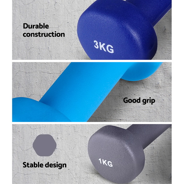 Made from neoprene, the dumbell set is weather resistant and has moderate resistant to
