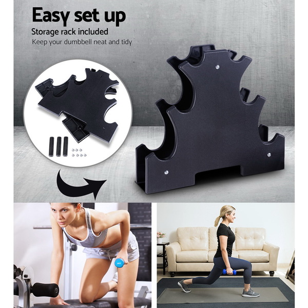 Everfit 6 Piece Dumbbell Weights Set 12kg with Stand