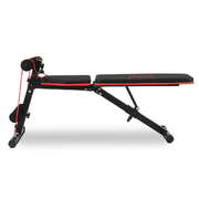 Our Everfit FID Bench is the ultimate fitness equipment to complete your home fitness workout. Featuring a fully adjustable joint, the backrest is adjustable to six positions. It can operate flat, inclined or declined, delivering maximum versatility for your home workout. From military presses and bench presses to bent-over rows, this bench can do it all. While it is extra effective, the comfortable leg rest keep your feet and legs locked into the correct position for maximised comfort. Featuring durable powder-coated steel tube construction, waterproof and oil-resistant PU leather and non-slip feet, the FID bench can easily withstand even high-intensity exercises. It also comes with bonus resistance bands to add variety to your workout. So save the trip to the gym and get fit at home with our FID bench.
