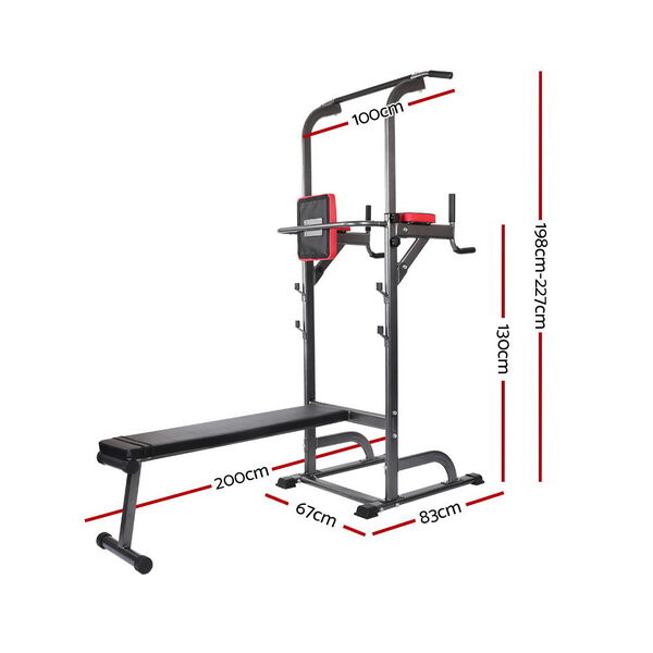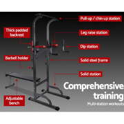 Forget about the gym. Bring the gym to your home with the Everfit Multi-function Gym. This 8-in-1 workout station is all you need for a great total body workout, offering a huge range of exercises for your upper body and core. It offers a range of exercises such as bench presses, chin ups, dips, pull-ups, weight lifts, leg raises, push-ups and more. Fact is, there is so much you can workout to with this versatile tower of power to push your body to its limits with results that matter. Constructed from heavy-duty, powder-coated tubular steel, the gym station is durable and strong and features large, non-slip rubber feet that will prevent unwanted movement, high-density and sweat-proof cushioning and padded handles and arm supports for truly safe and comfortable training regimes.