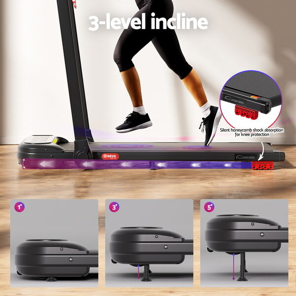 Treadmill Electric Walking Pad with Incline Foldable for Home Gym Black
