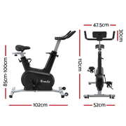 Experience a smooth, gym-quality workout at home with the Exercise Bike. Its 24-level magnetic resistance system delivers challenging rides while operating whisper-quiet. Track your progress in real-time via the colour LCD monitor, displaying time, distance, RPM, speed, calories, and resistance. Sync with the fitness apps through Bluetooth connectivity. Customise your setup with adjustable seat and handlebar positions, and enjoy added convenience with built-in iPad and bottle holders. The concealed flywheel ensures safety for families and pets, while transport wheels allow easy relocation. Supports users up to 120kg.