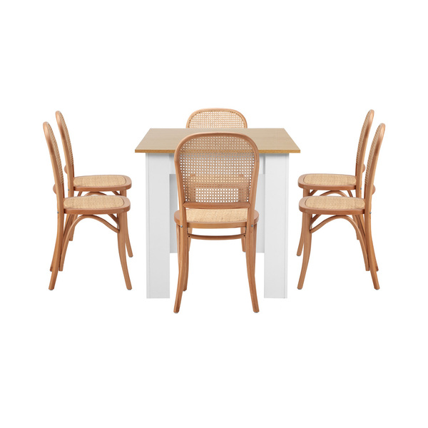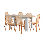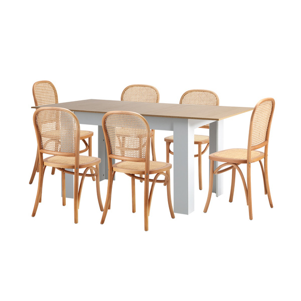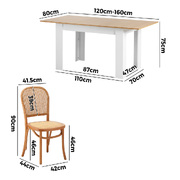 160cm Extendable Dining Table with 6PCS Dining Chairs Rattan Natural