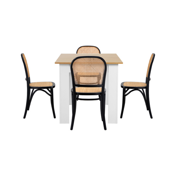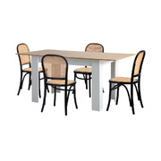 160cm Extendable Dining Table with 4PCS Dining Chairs Rattan White