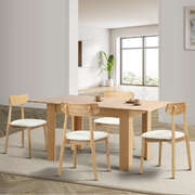Built to last, our dining chairs and extendable table boast exceptional craftsmanship and long-lasting materials. The chairs offer a comfortable and supportive seat, while the table showcases a sturdy foundation for gatherings that stand the test of time. The innovative extendable function allows you to effortlessly adapt the table to your needs, accommodating both intimate dinners and larger gatherings with ease.
