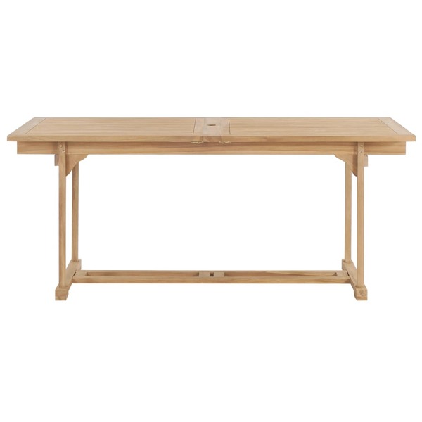 This extendable wooden garden table is ideal for outdoor use. It will be the focal point of your garden, terrace or patio. Thanks to its double extension pieces, this dining table can be extended from 180 to 230 or up to 280 cm in length when extra space is required. Constructed from extremely durable teak hard wood, this piece of teak furniture has been seasoned, kiln dried and then fine sanded to give a very smooth appearance. Teak wood is known for its exceptional strength and weather resistance, making it far more suitable for garden furniture than any other kind of wood. Teak wood is the perfect choice if you want to purchase a long lasting piece of garden furniture. Meanwhile, it can also resist moisture and insects. Due to its sturdy structure, this furniture is very safe and durable. Furthermore, it will also provide you with comfort and great convenience to spend a pleasant time with your family and friends. Besides, this table has a hole so that an umbrella can be installed. The outdoor dining table is easy to assemble.